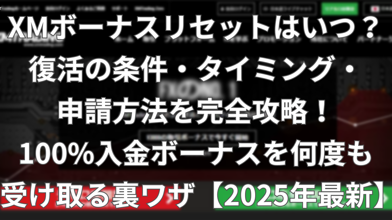 XMボーナスリセットはいつ?復活の条件・タイミング・申請方法を完全攻略!100%入金ボーナスを何度も受け取る裏ワザ【2025年最新】