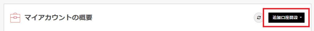 追加は公式サイトの「マイアカウントの概要」から「追加口座開設」をクリックすることで手続きすることができます。